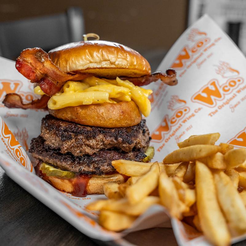 Served on a grilled brioche bun with our legendary fries | Wing Co. B.A.B.A. Burgers: All B.A.B.A. Burgers come with 2 patties for 16.50 or single patty option for 13.50